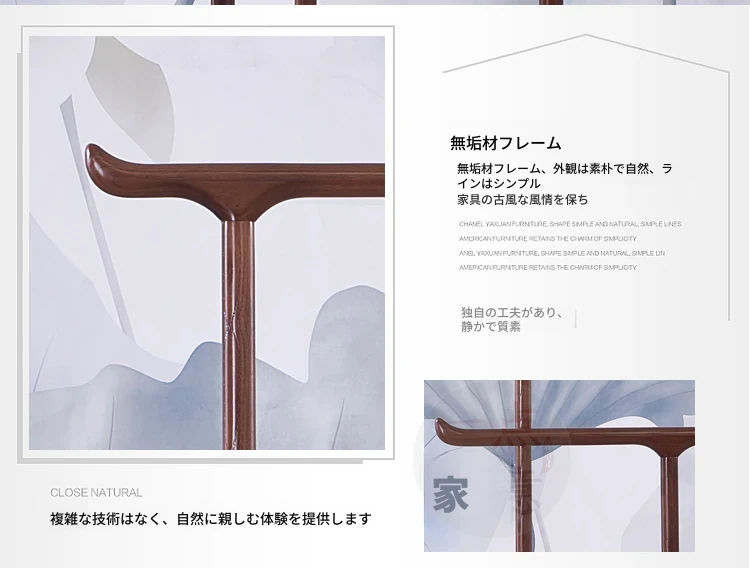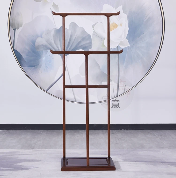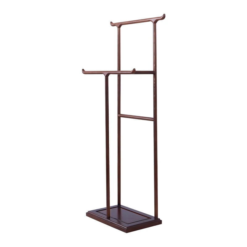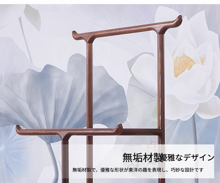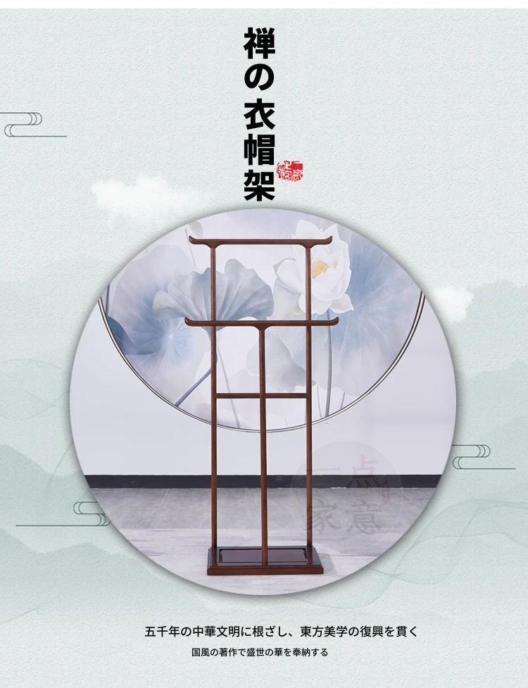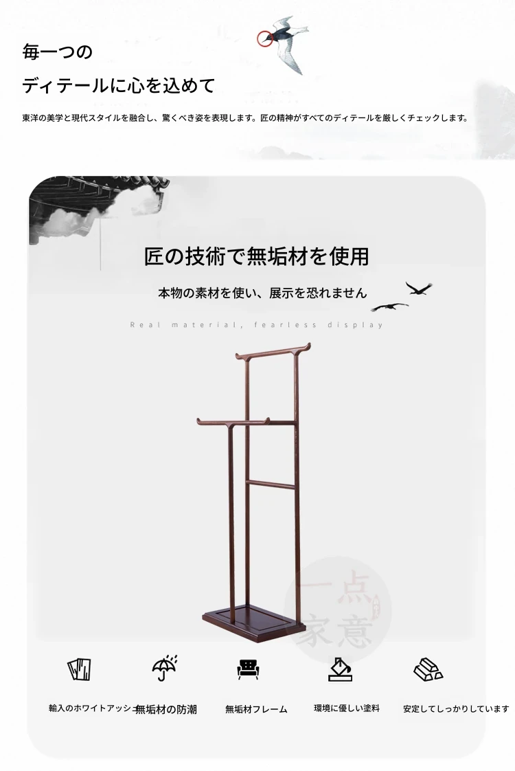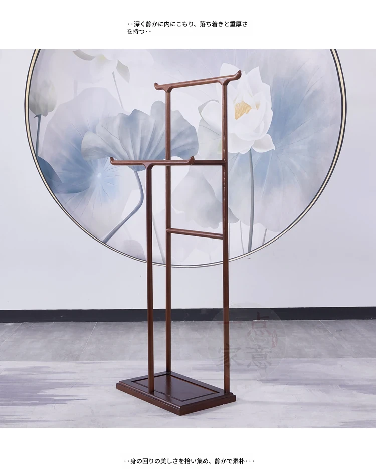 新中式衣帽架 - 民宿やホテルのスタイルに最適!シンプルでエレガントなデザイン、寝室や茶室にぴったりの立体的な衣類ハンガー。おしゃれな空間を演出し、機能性も抜群!