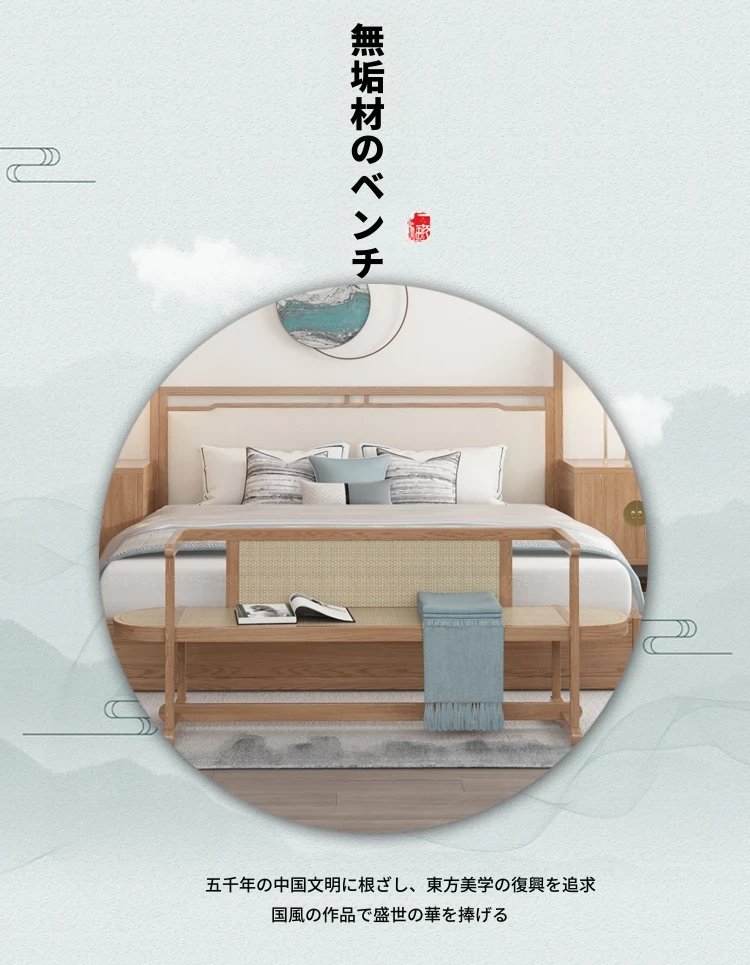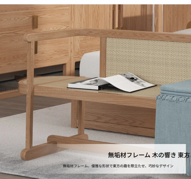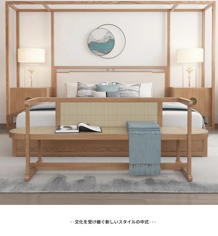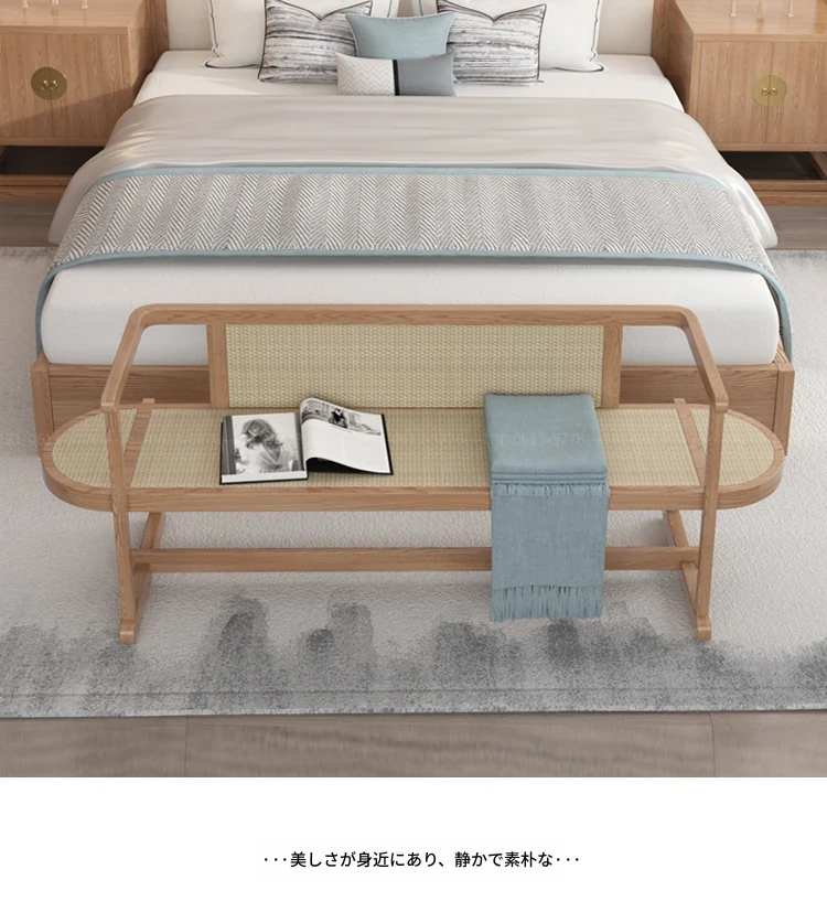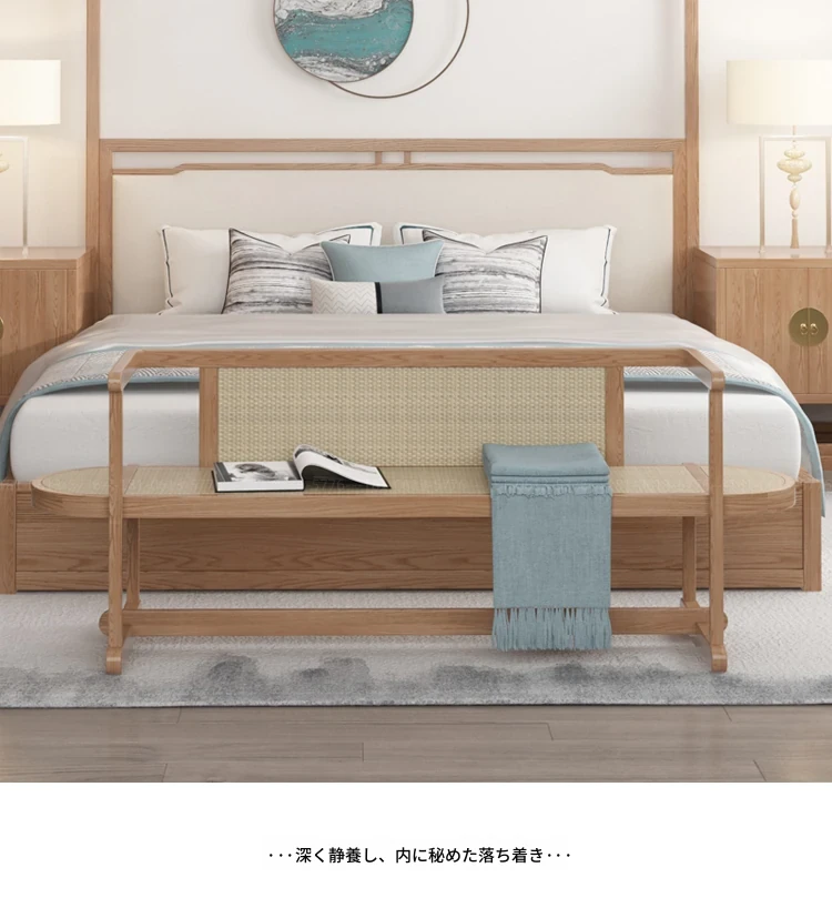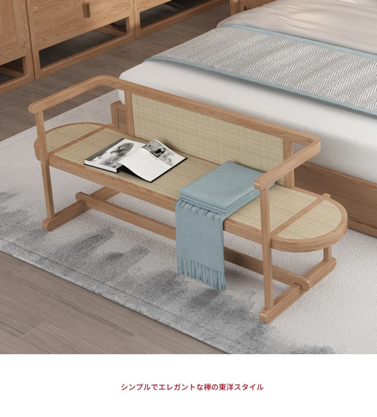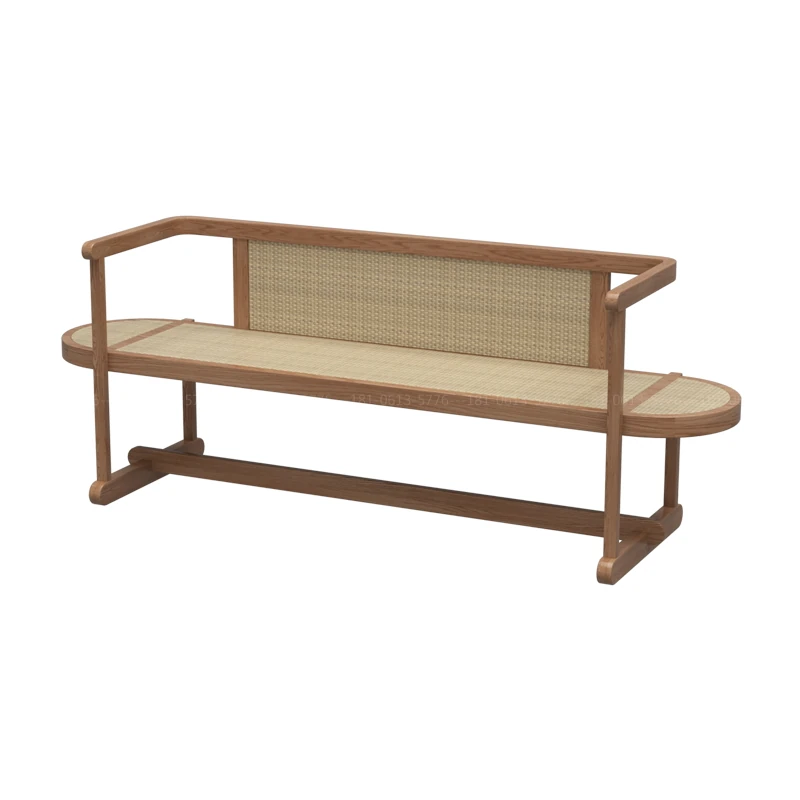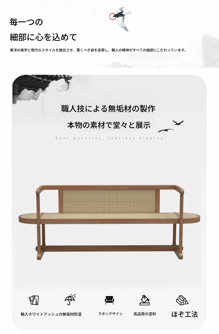 侘寂スタイルのベンチ|ホテルや民宿にぴったりな藤製の長椅子|モデルルームや販売所、クラブ、茶室に最適な禅の雰囲気を演出する長椅子!心を落ち着けるひとときを提供します。