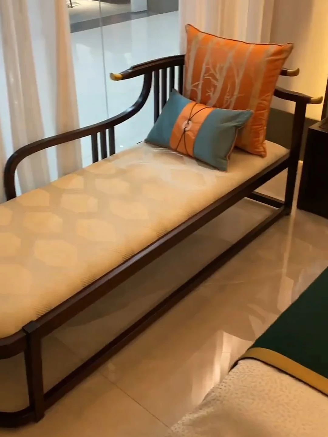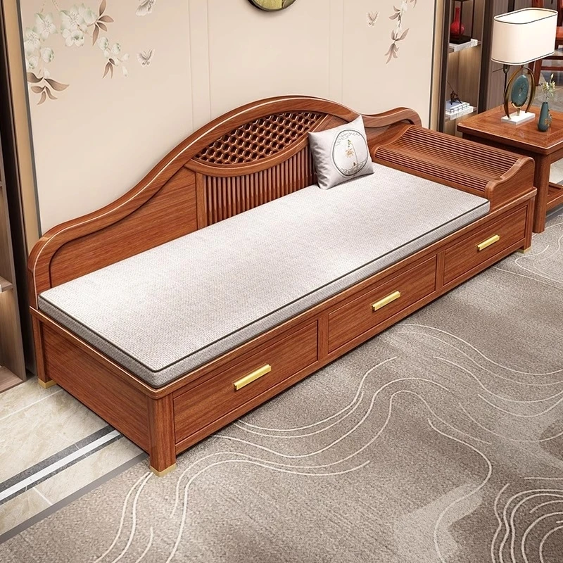 陽漫新中式美人榻|おしゃれな小型収納ロハンベッド|リビングにぴったりの禅スタイル|高級胡桃木のバルコニー用リラックスチェア|空間を美しく演出する魅力的な選択!