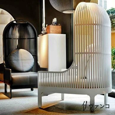 新古典スタイルのソファチェア - リラックスした布製のバードケージソファ!ホテルロビーやサロンにぴったりの洗練されたデザインで、ゲストを魅了するおしゃれな家具です。舒適さと美しさを両立したアイテム!