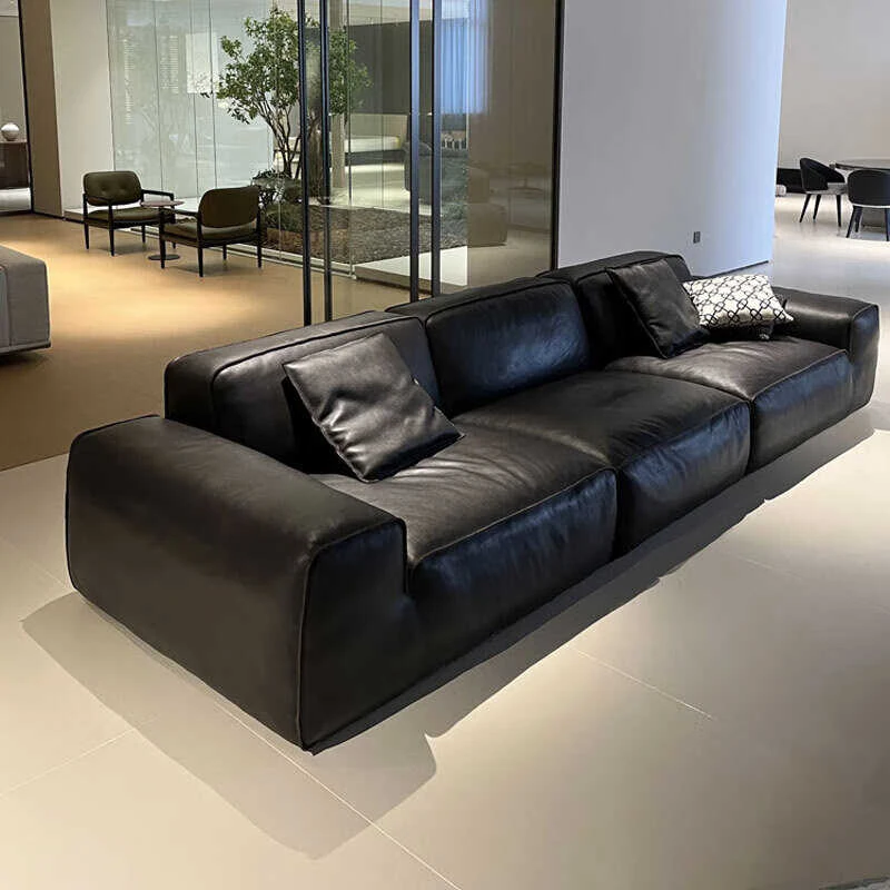 夏図の本革ダークブラックソファ - 高級イタリアンミニマリズム、リビングルームにぴったりな一級牛皮製デザイン、別荘にも最適なエレガントなブラックレザーソファ。高品質とスタイルを兼ね備えた極上のリラックス空間をお届けします!