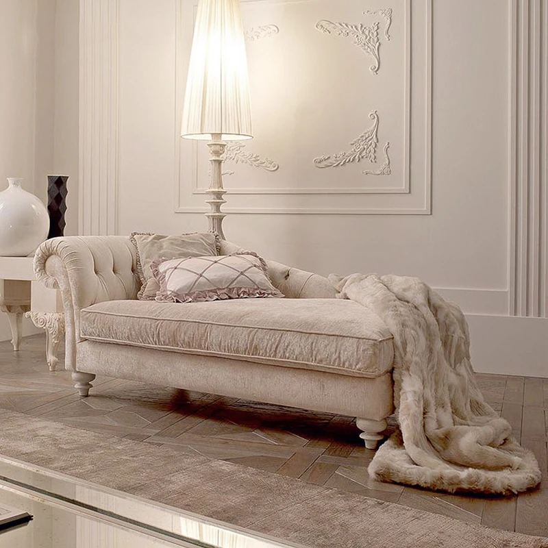 エレガントな欧風新古典スタイルの布製貴妃椅子 - 小さな部屋にもぴったり!おしゃれでリラックスできる美人榻、カバーは洗濯可能。快適なソファとしても使える太妃椅子で、あなたの空間を格上げ!
