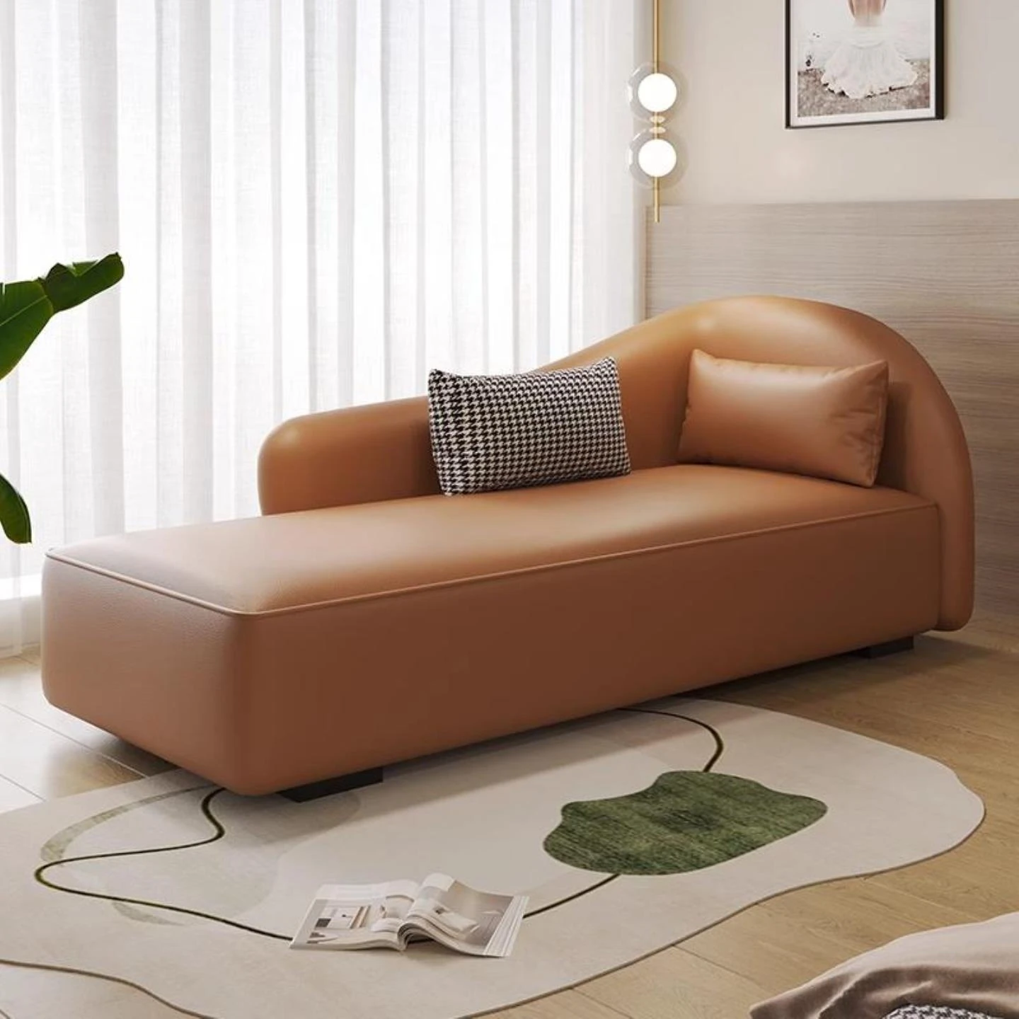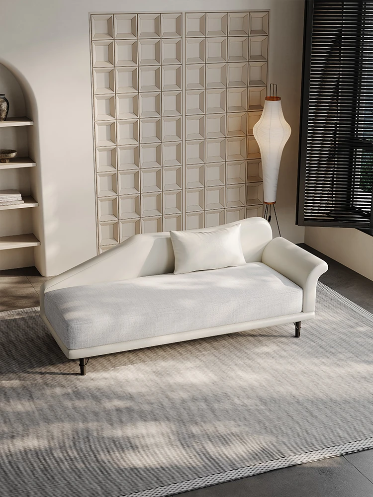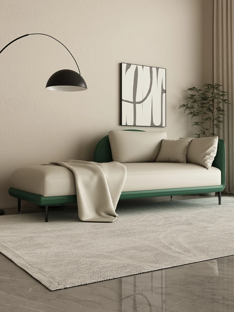 モダンミニマリストの美しさ、寝室やリビングにぴったりの曲線デザイン!真皮製の貴妃椅子ソファベッドで、小スペースに最適。スタイリッシュなリラックスタイムをお楽しみください!