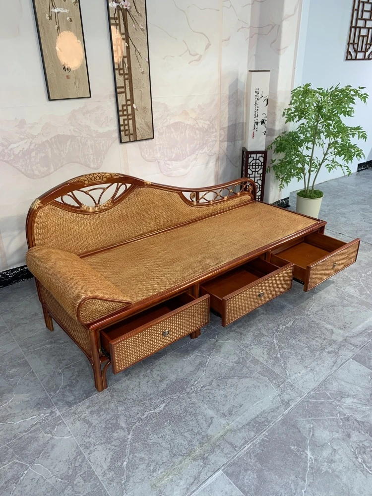 天然素材使用!冬夏兼用のリラックス美人ソファ、籐製の貴妃椅子。快適なひとときを提供する、実木フレームのロハンベッドスタイルで、あなたのリビングに優雅さをプラス!