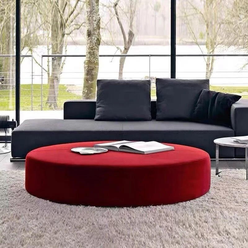 イタリアンミニマリズムラグジュアリーオットマン - リビングルームにぴったりの円形フットスツール。優雅なデザインで、くつろぎのひとときを演出します。おしゃれなソファのアクセントにも最適!