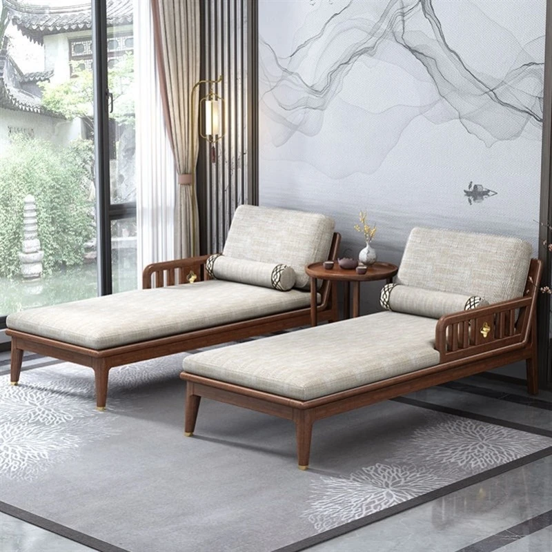 新中式実木製の貴妃ソファチェア - 寝室やリビングにぴったり!リラックスできる一人掛けのリクライニングチェアで、バルコニーでも大活躍。心地よいひとときをお楽しみください。