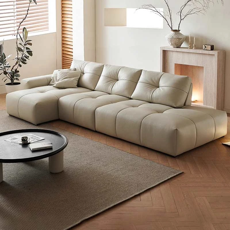 高級感あふれる本革ソファー|一流の牛革使用|イタリアンミニマルデザイン|狭いリビングにも最適な4人掛けコンビネーションソファ|贅沢なひとときをあなたに!