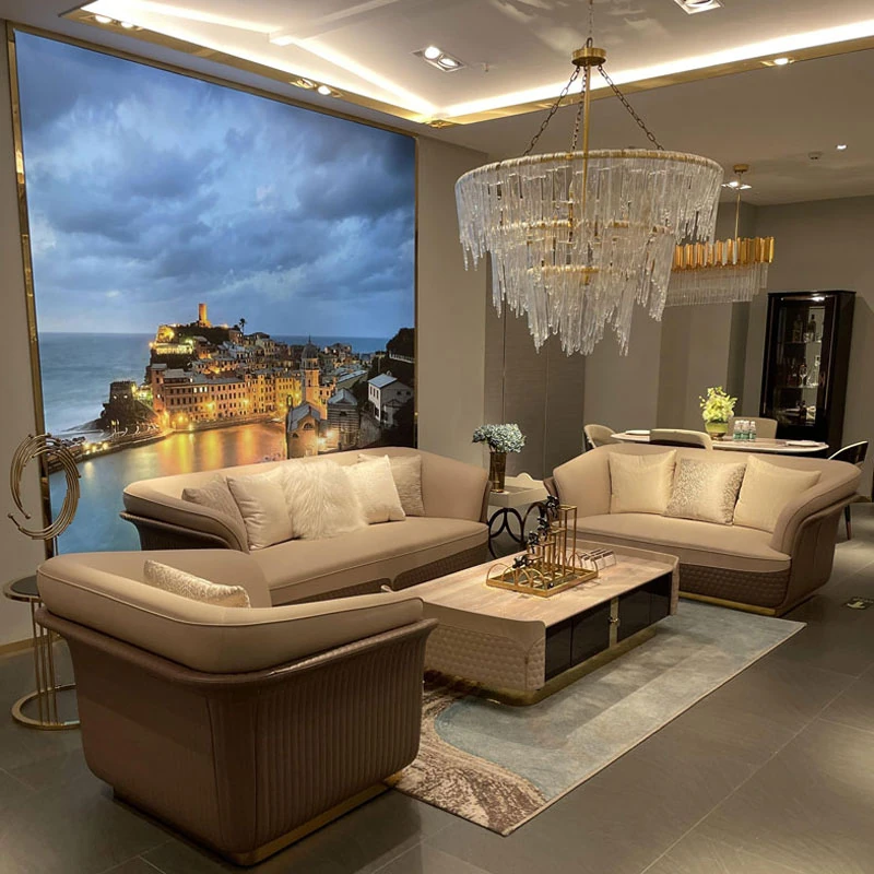 イタリアンラグジュアリーソファ 後現代風シンプルデザイン ヴィラ・スイート用123コンビネーション リビングルームにぴったりの豪華本革サンプルルーム家具