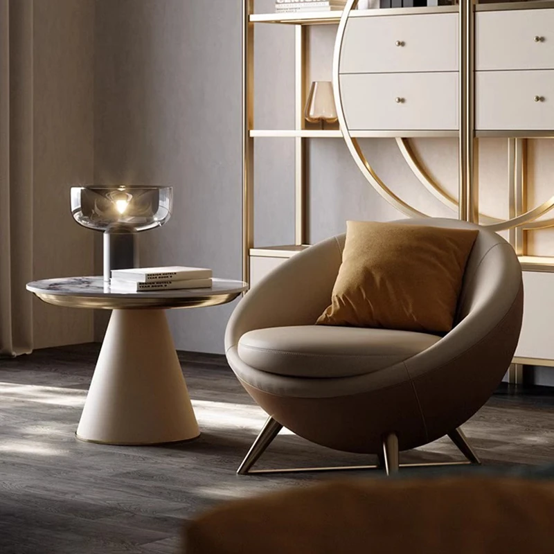 欧風ラグジュアリー・ロマンティック・シングルチェア|新古典スタイルの本革製レザーソファ|贅沢なリラックスを提供する、寝室にぴったりな貴婦人の椅子!