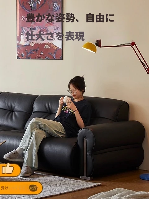 黒いソファ 中古風 真实皮革 イタリアンミニマリズム リビングルーム用 トップグレイン牛革 バウハウスデザイン スタイリッシュで洗練された空間を演出!