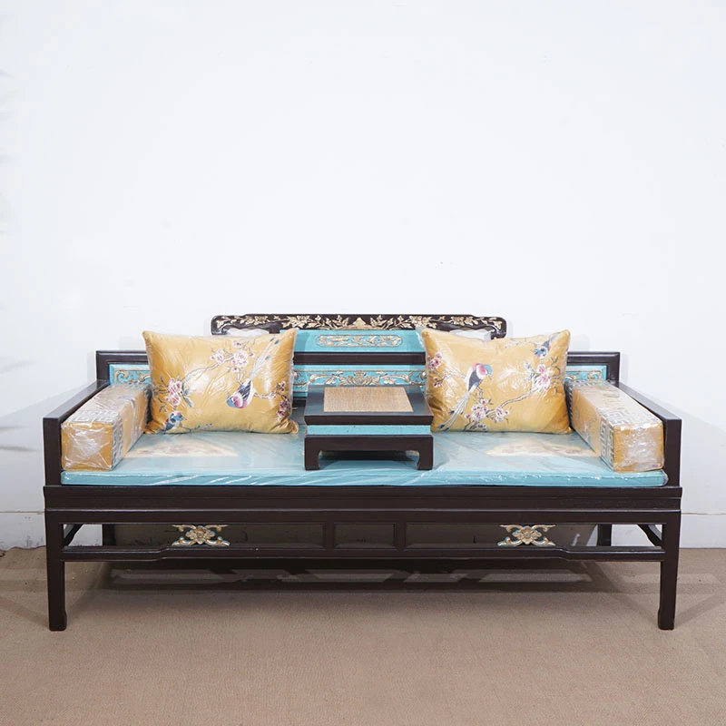 中式レトロデザインの実木製ソファベッド、彫刻と金装飾が施されたロハンベッド、貴妃椅子付き!小さなお部屋にもぴったりな魅力的なリビング家具。