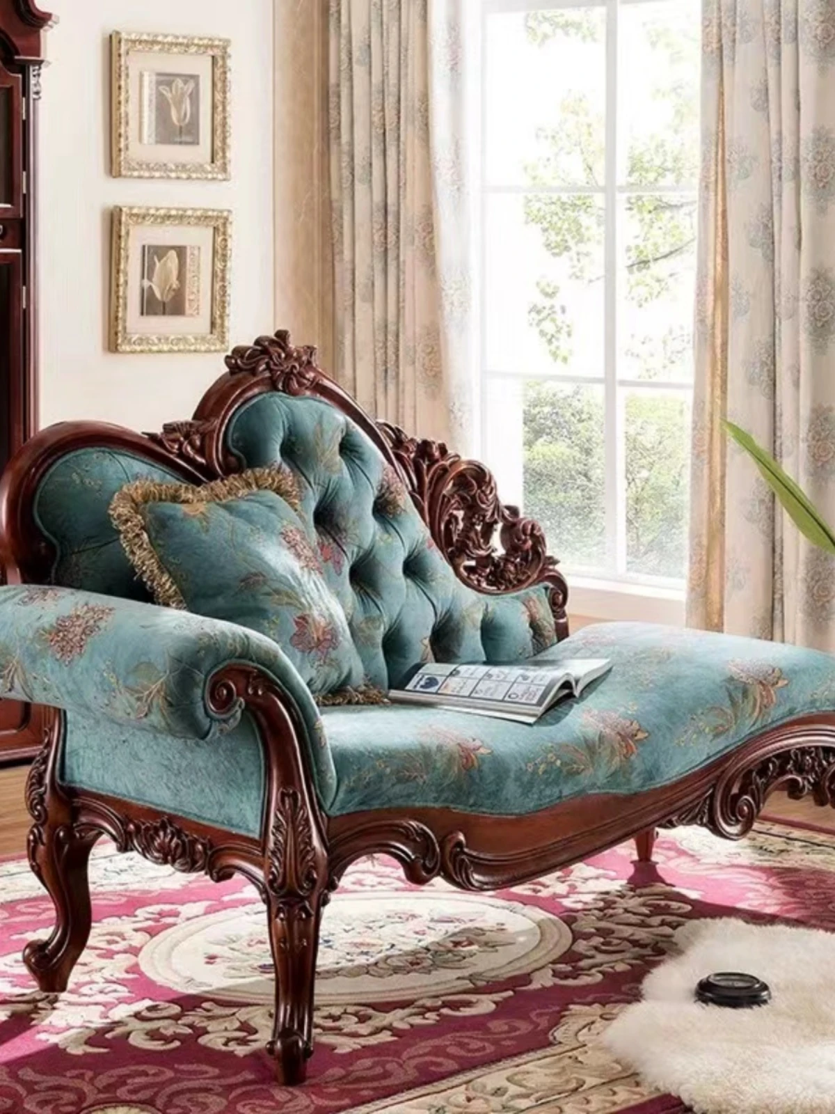 エレガントな欧風ロマンチックソファ - 高級無垢材使用の貴妃椅子!田園スタイルの寝室にぴったりなリラックスソファ。韓国風デザインでくつろぎの時間をお楽しみください。