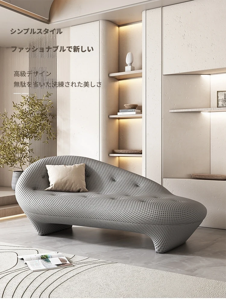 北欧スタイルのラムウールソファ、小型住宅にぴったりのアーチ型デザイン!美容院にも最適なクリエイティブな二人掛けソファ。トレンドのインテリアを楽しもう!