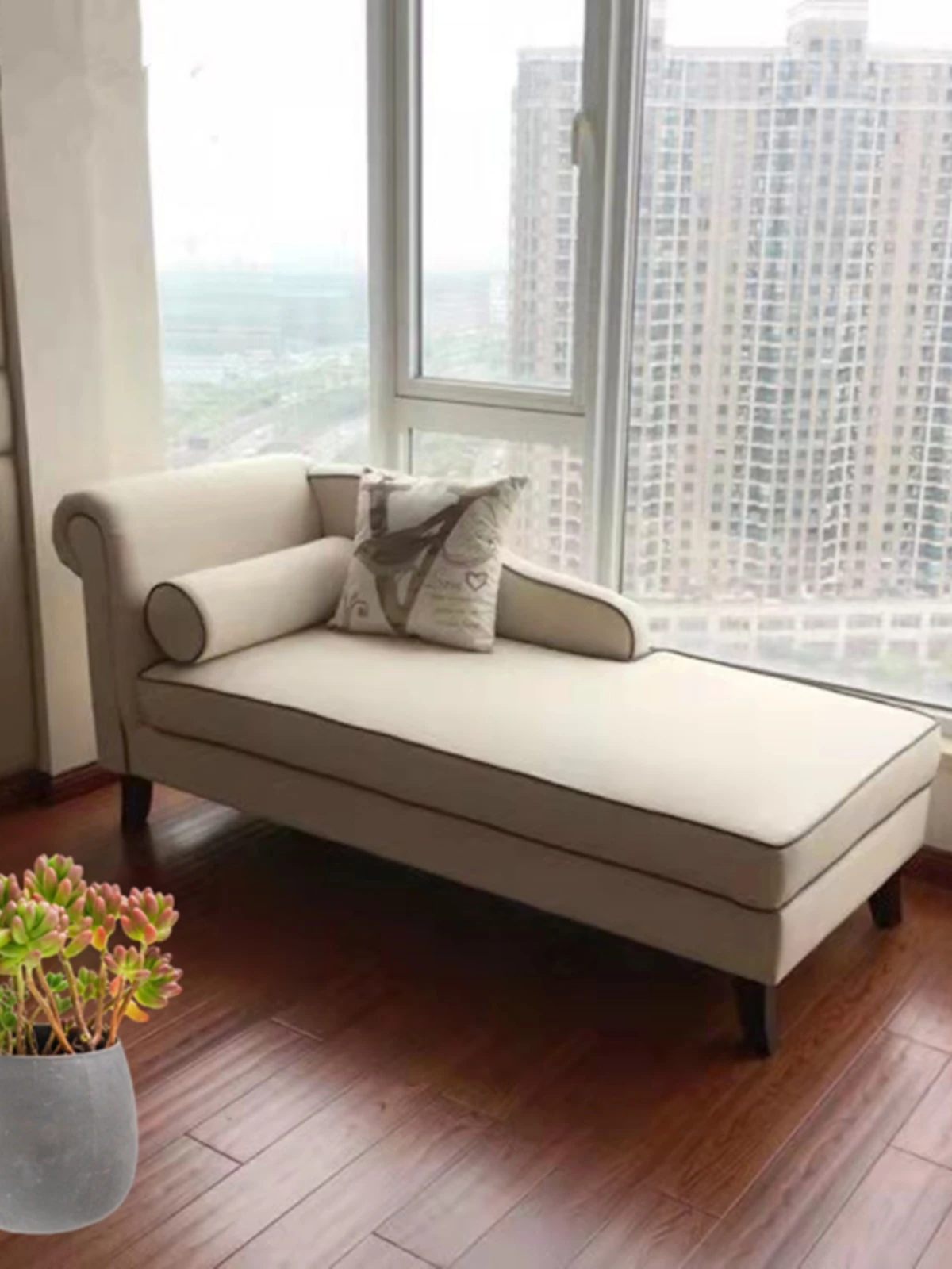 北欧風シンプルデザインの貴妃椅子 - おしゃれでコンパクトな小型住居に最適!クリーミーカラーの布製で、インテリアにぴったりなトレンドアイテム。あなたのリビングを魅力的に演出します!