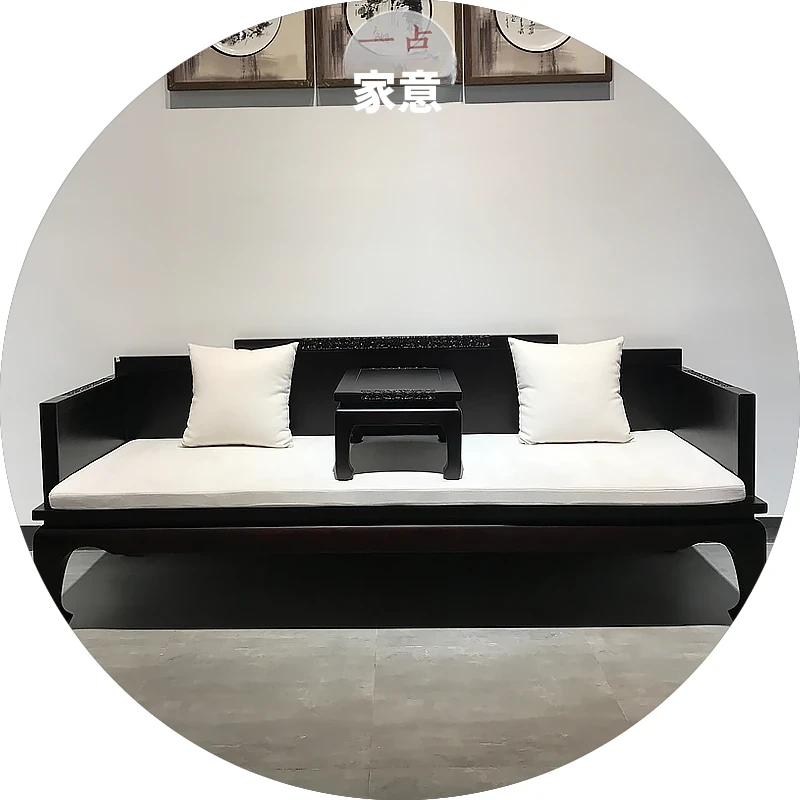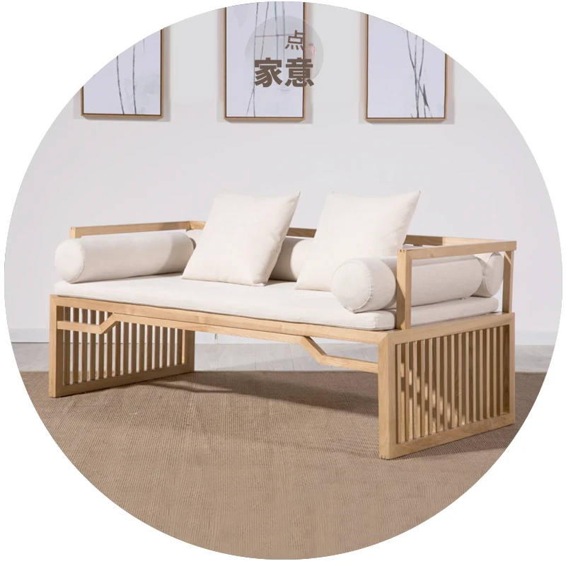 ミニマリスト禅スタイルのソファ|中華風無垢材ダブルサイズ|心安らぐ民宿・ロハンベッド|茶室・書斎・オフィス用の接待・リラックスチェア。心を落ち着けるデザインで、あなたの空間を特別に演出します。
