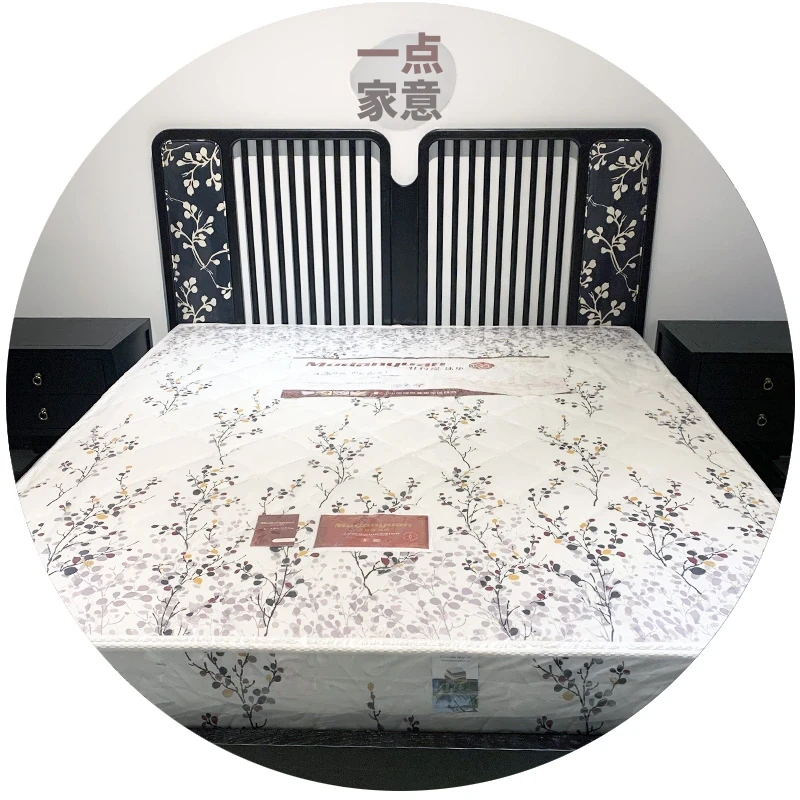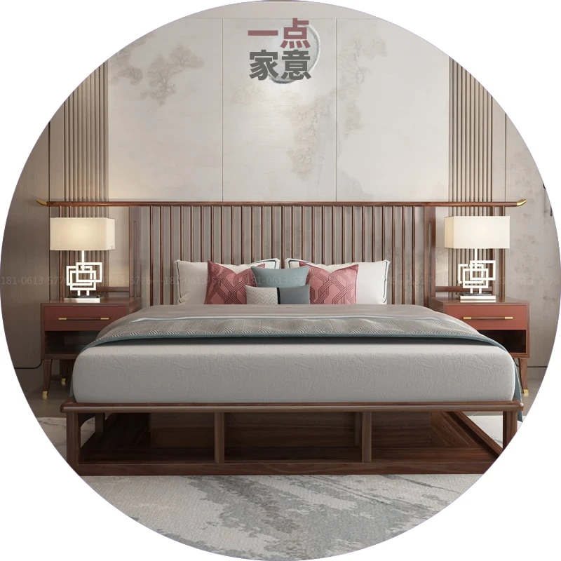 新中式レトロ禅スタイルのウォールナット無垢材ダブルベッド - 1.8m、民宿やホテルにぴったりの高級感あふれる家具、別荘モデルルームにも最適!