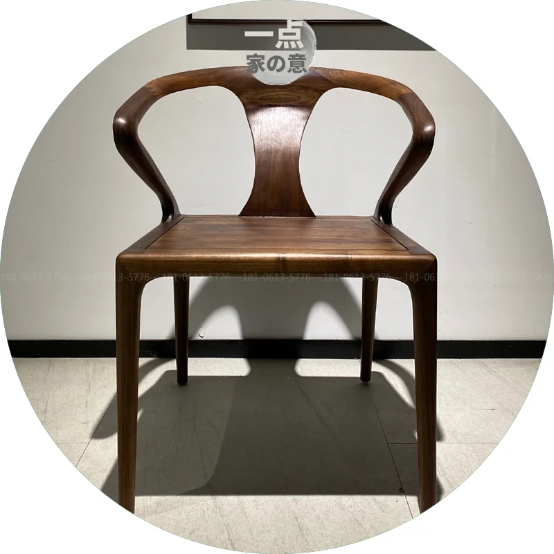 モダン中式の無垢材一人掛け椅子 - 茶室や会所に最適な胡桃木製デザインチェア。ヴィラや民宿、ホテルにぴったりのスタイリッシュな空間を演出。あなたのリラックスタイムを格上げするアイテムです!