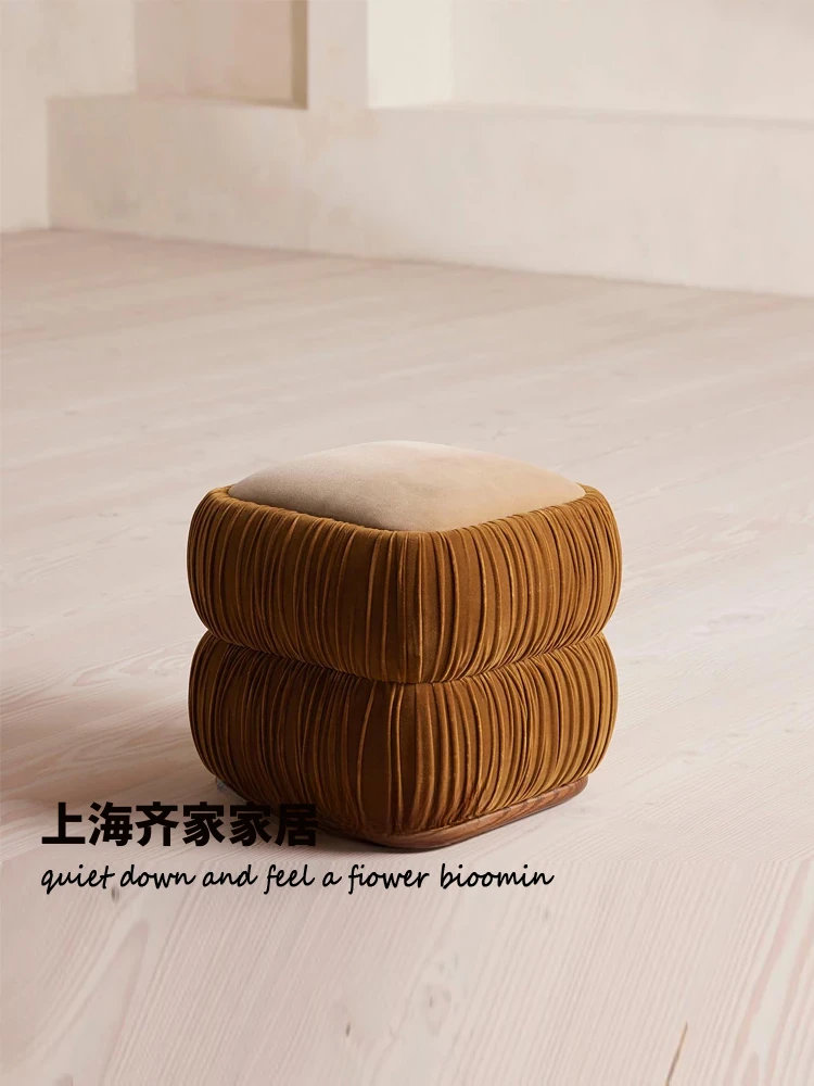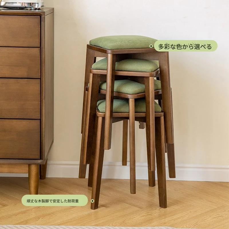 スタイリッシュな実木製ソフトパッキングスツール|家庭用ダイニングチェア|積み重ね可能|小型住宅向け|ラグジュアリーな化粧台|北欧風シンプルデザイン|靴を履く時にも便利!