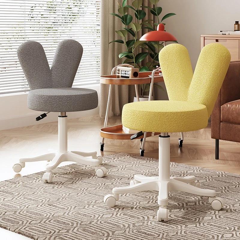 クリーム風デザインの化粧椅子 - 家庭用・寝室・パソコン用、背もたれ付きの回転椅子、昇降機能付き、ウサギ耳デザインの可愛い化粧台スツール!快適な座り心地でおしゃれな空間を演出します。