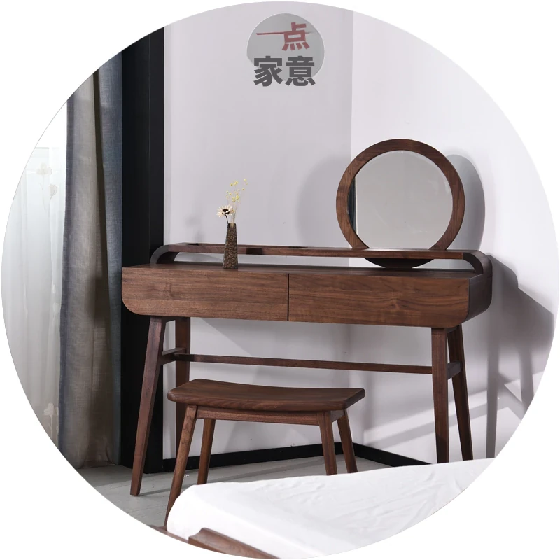 新中式禅スタイルのウォールナット無垢材ドレッシングテーブル - 民宿やクラブ、別荘に最適な洗練されたデザイン。おしゃれなベッドルームにぴったりの家具セット!