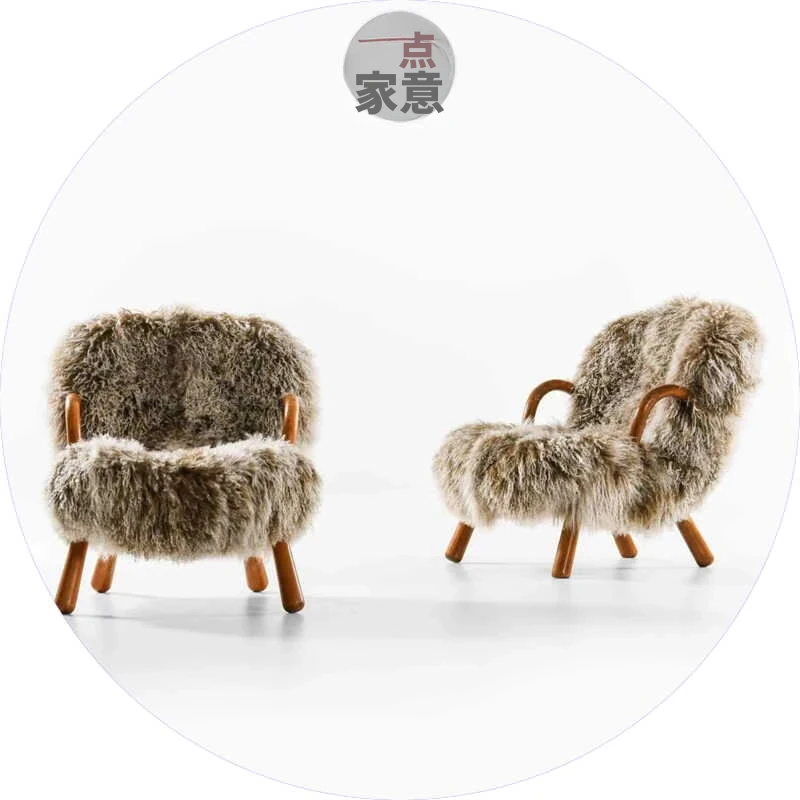 民宿にぴったり!羊羔毛使用の一人掛けソファ - ヴィラスタイルのモデルハウスに最適なリビング・バルコニー用のロングファー・トラチェアで、快適なリラックスタイムを実現!