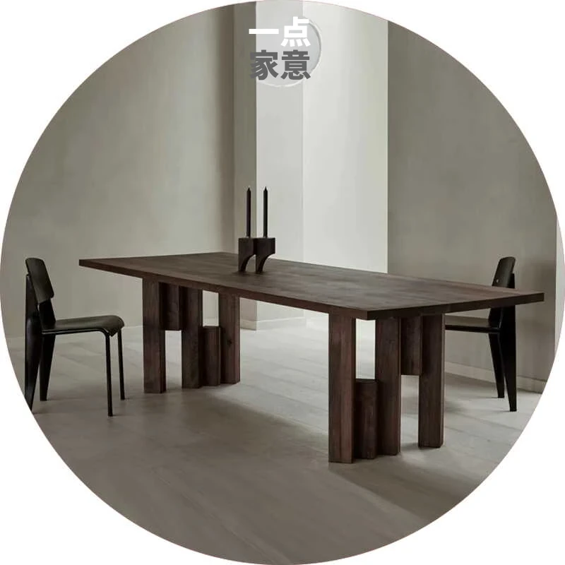 ホテル用無垢材ロングテーブル - 和の美を感じるシンプルなデザインのオフィスデスク、侘び寂びスタイルのダイニングテーブル、マルチユースの茶卓やライティングデスクとしても最適な作業台!