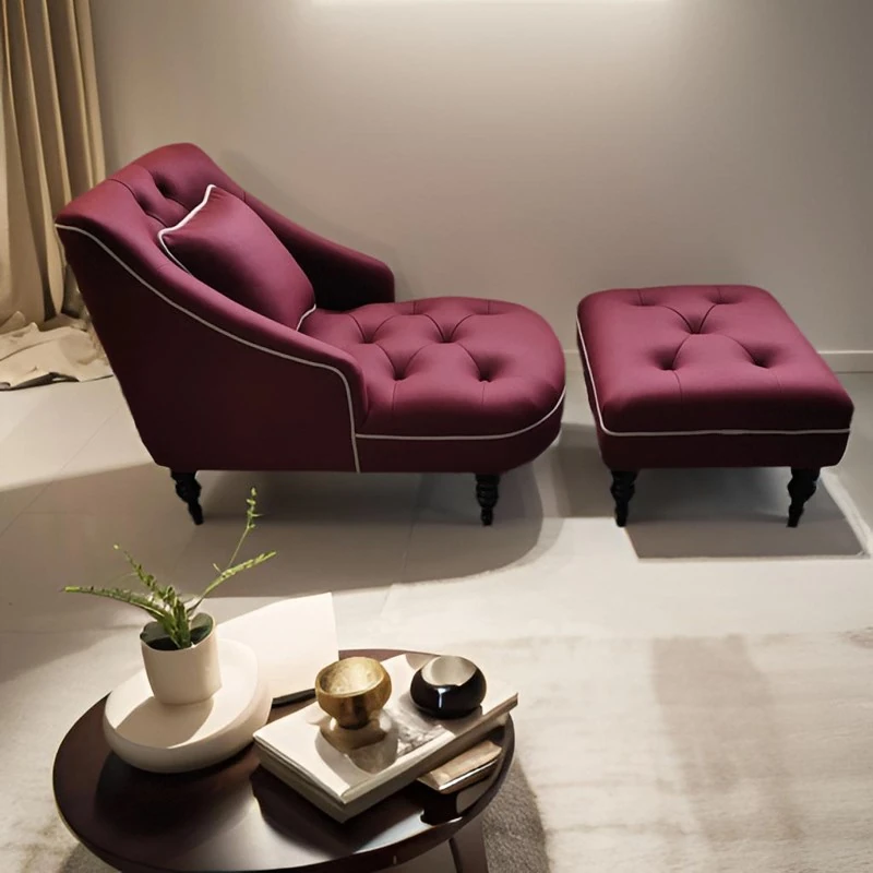 アメリカン・ライトラグジュアリー・シェーズロングソファ|リビングにぴったりの布製・ベロア素材|くつろぎのひとときを演出するラウンジチェア|おしゃれなデザインで、あなたの空間を華やかに!