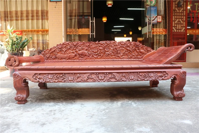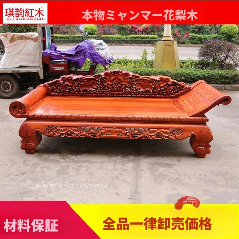 ミャンマー花梨木製の贅沢な紅木貴妃床|明清時代のクラシックデザイン|厚手の無垢材使用|中華風のラグジュアリーなリラックスソファ!あなたの空間に優雅さをプラス!