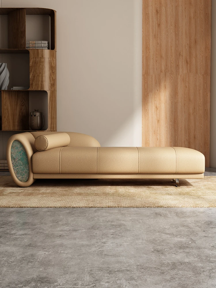 イタリアンラグジュアリー!高級フルレザーの貴妃椅子、リビングルームや寝室に最適なデザイナーソファ。豪華なデザインで、くつろぎのひとときを提供します。