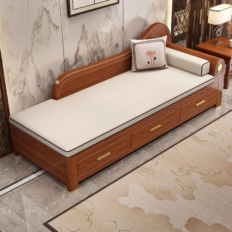 百思宜新中式スタイル 小型収納ロハンベッド リビング禅の雰囲気 ウォールナット製バルコニーレジャーチェア ふかふかの貴妃椅子でリラックス!