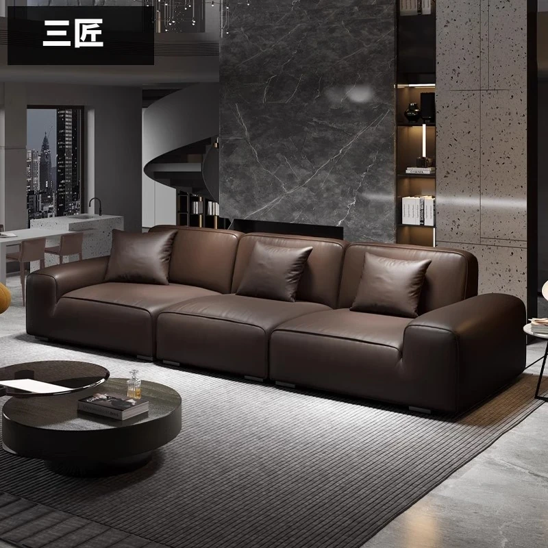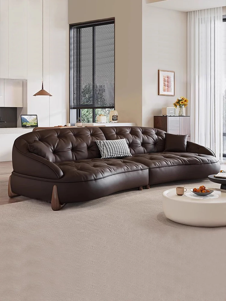 アレクシー・モダン 中古風 本革ソファ リビング用 2025年新作 イタリアンミニマリズム レトロアーチ型 本革ソファで高級感と快適さを実現!