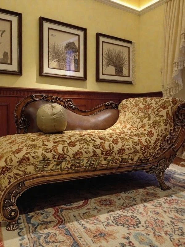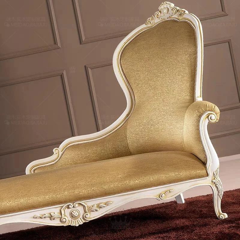 フランス風のラグジュアリーな無垢材製の貴妃椅子、ベルベットの彫刻デザインが施された豪華なリビング用ソファ。別荘や宮廷スタイルの美しい座り心地を提供します!