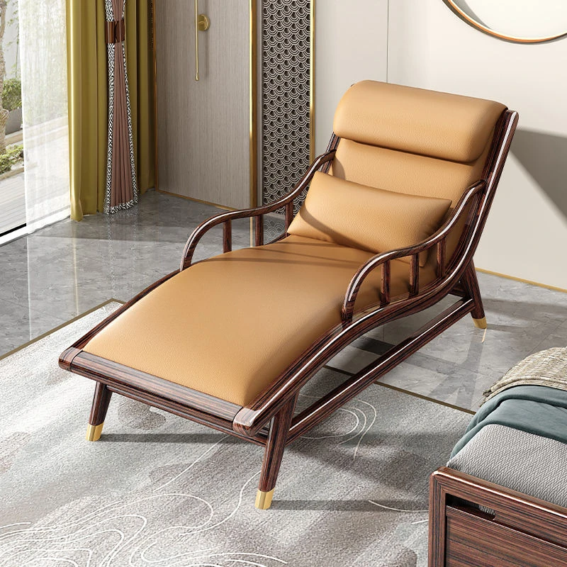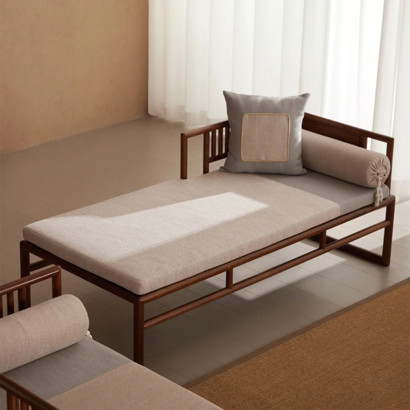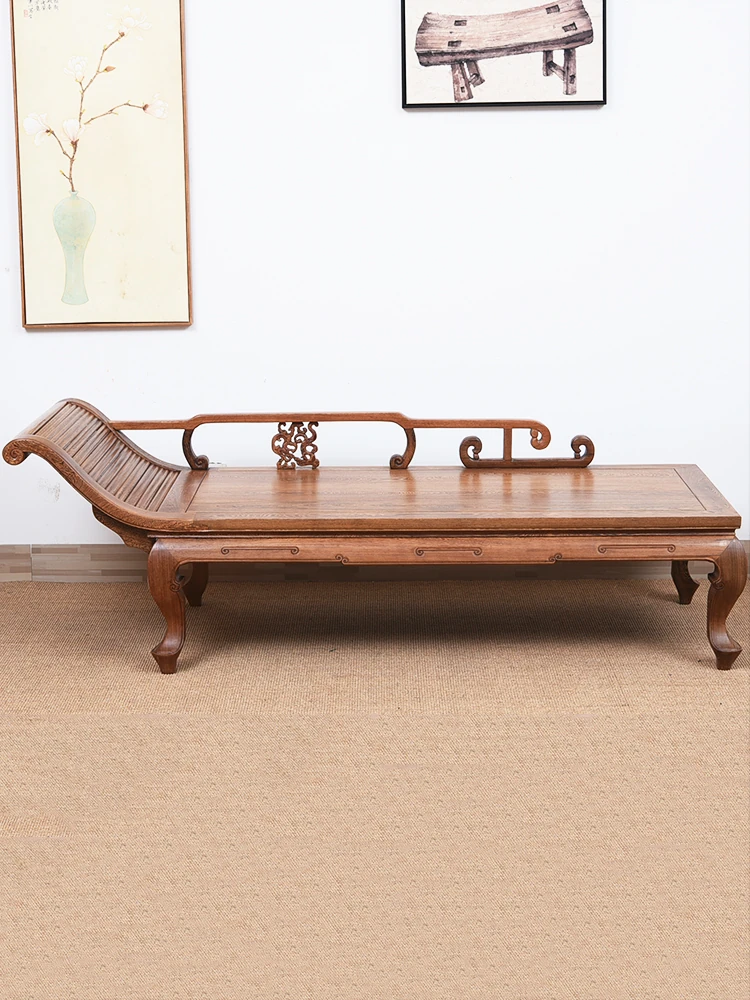 新中式スタイルの無垢材製貴妃椅子、リラックスできる寝椅子、美しい人のためのラグジュアリーなバルコニー用ソファ、禅の雰囲気を持つリビングルーム家具、心地よいくつろぎを提供します!