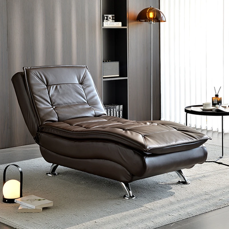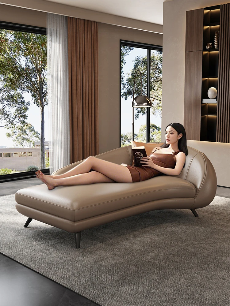 イタリアンラグジュアリーの本革貴妃椅子 - リビングルームや寝室に最適!デザイナーが手掛けたスタイリッシュなベッドサイドソファで、贅沢なくつろぎ空間を演出します。