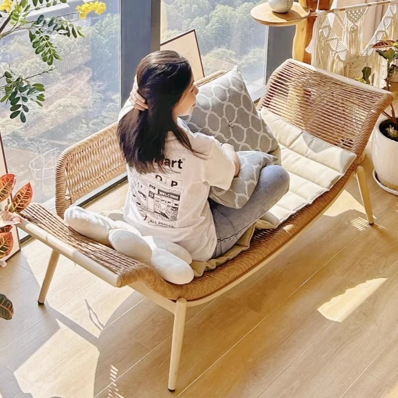 おしゃれな藤製ベッドルームチェア!リラックスできるデザインのロングチェア、シンプルでエレガントなダブル・トリプルチェアのセット。欧風の藤製ソファで、心地よいひとときをお楽しみください。